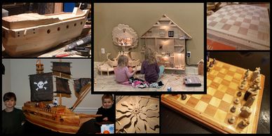 Highly skilled finish carpenter (and rough-in / framing carpenter) with a penchant for furniture and toymaking. Comfortable with all manner of hand and powered woodworking tools--lathes, planers, routers, jointers, table/mitre/band/jig/scroll/coping saws, carving tools, etc. Have built libraries, intricate stairways, play houses, tables, chairs, shelves and custom cabinets, beds, doll houses, pirate ships, chess sets and more. Starting with complete red oak trees that were felled three years prior, transformed these trees into an entire home remodel including an elaborate wine room.