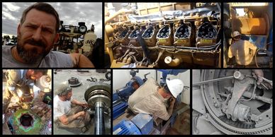 Gas combustion, diesel & bi-fuel systems. Experience to 1,800 HP prime movers (CAT 3512, Cummins KTA50, Detroit Series 60), plus smaller Deutz, John Deere, WPI--and associated trucks & equipment. Braking systems through auxiliary (Eaton / Wichita), mechanical cranes and aircraft. O-Level jet and turboprop engine mechanic, + GTCs, APUs and GSE. Oilfield Top Drives, drawworks, power wrenches, catwalks, torque converters, triplex pumps, centrifugal pumps, agitators, centrifuges, separators, Gas Processing Units, wellheads & BOPs. Heat exchangers, boilers & power plant condensers. Steam and wind turbines. Mechanical & hydraulic cranes. Hydraulic & pneumatic motors, winches, brakes and other systems. Gyroscopic & cone-type rock crushers. Conveyer systems. Fuel systems. Heavy equipment. Shop equipment. Aviation / medical LOX systems. Complex gearboxes. Large compressor systems. Work with welders, torches, liquid nitrogen and wrenches to 4"; hi-torque bolts to thousands of foot-pounds (intensifiers and hydraulic torque wrenches), machine tolerances to thousandths of an inch. QA/QC and NDI/T processes, hardness testing, vibration analysis & other conditions monitoring.